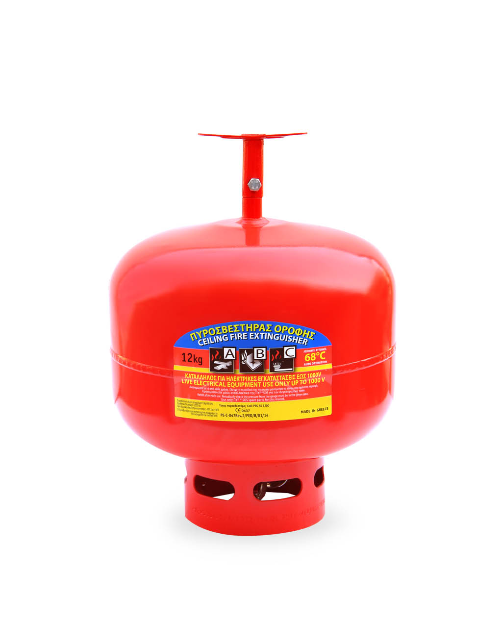 Αυτόματος πυροσβεστήρας οροφής ξηράς κόνεως ABC 12kg