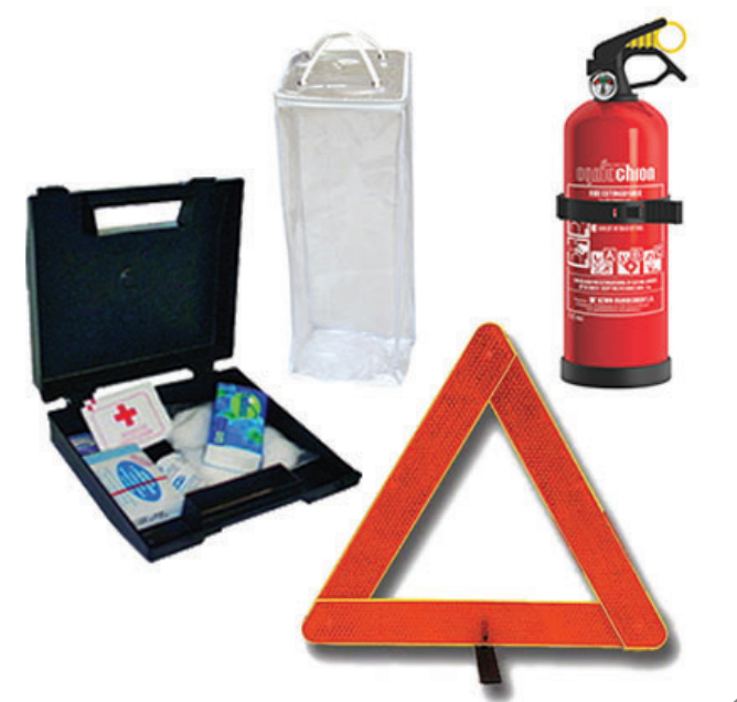 Πυροσβεστήρα ξηράς κόνεως 1kg με κατασβεστική ικανότητα 8Α‐ 34Β (με πλαστικό κλείστρο), τρίγωνο, φαρμακείο απλό.