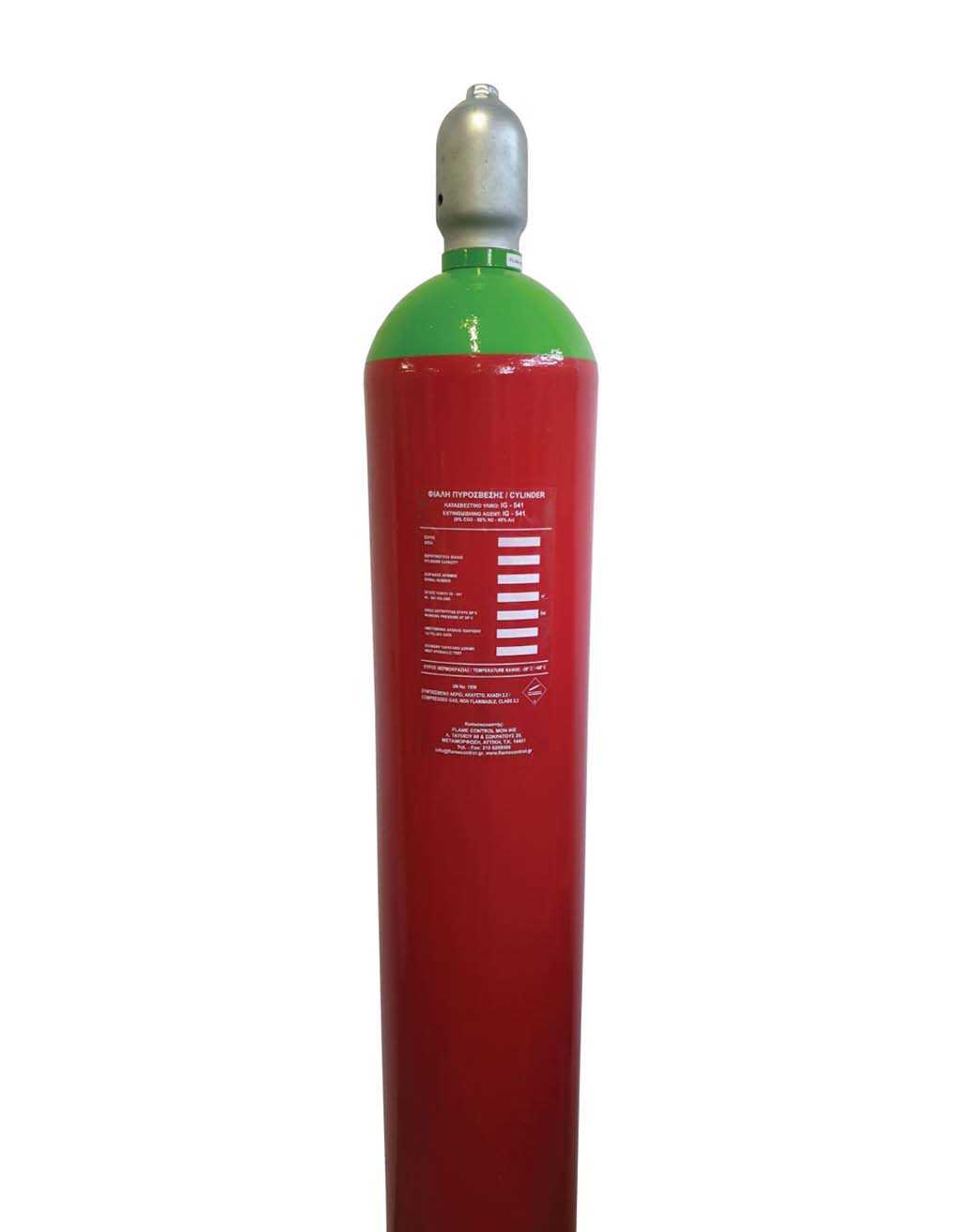 Φιάλη IG-541, 80lt, 200 bar πίεση λειτουργίας, 16,4m3 κατασβεστικού υλικού